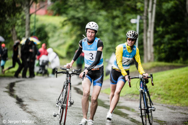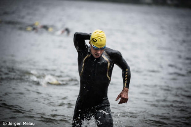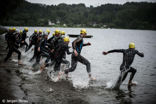 All lined up and ready for this sprint triathlon in cozy Norwegian conditions.