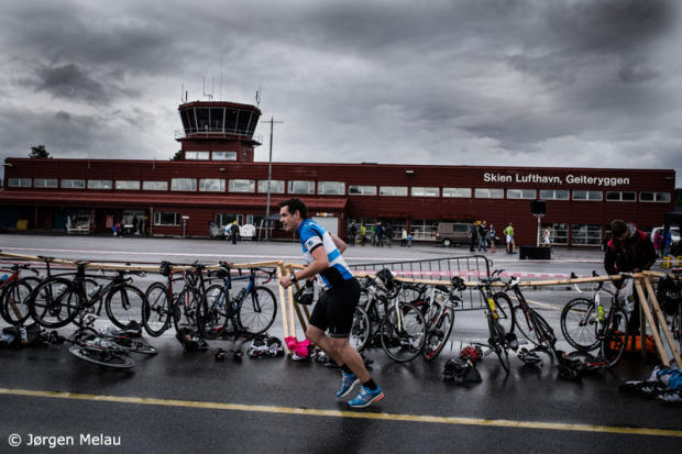 The Skagerrak Airport Triathlon took place in the commercial airport in Skien, Telemark in Norway a few days ago and most of the bike segment and the run happened on the airstrip. Athletes also had to check in at the airport, and post race festivities took place there too. The weather was Norwegian and everyone involved seemed to have a great time. Race winners were Norseman champ Henrik Oftedal and Brita Cecilie Mustad and the event was organized by a local triathlon club.