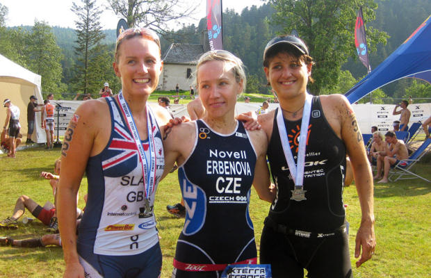 The women’s podium L to R – Jacqui Slack (2nd) Helena Erbenova (1st) Marion Lorblanchet (3rd).