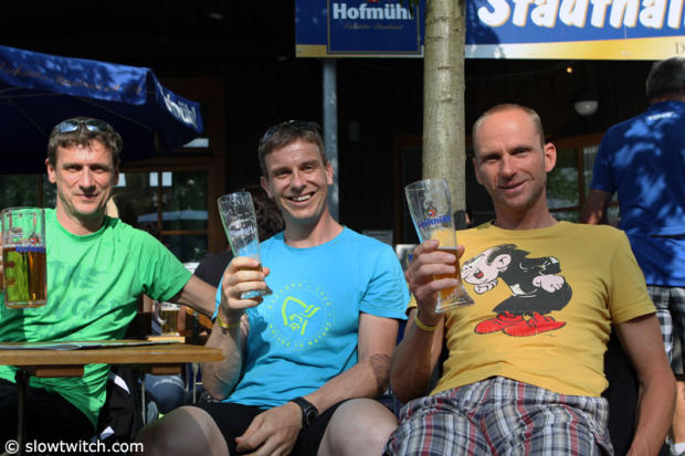 Dirk Bockel was enjoying Leberkäse and potato salad at the carbo party. A wise choice I must say. Cam Brown also tried it and he did not even know what it was. Kudos.