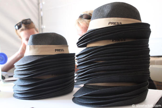 Possibly inspired by the Slowtwitch editor-in-chief, the press at Interbike was offered these Fedora hats for sun protection.