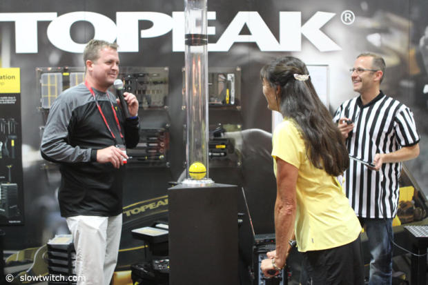 Topeak had a fun competition going to see who could drive the yellow ball with bicycle pump pressure up fastest.