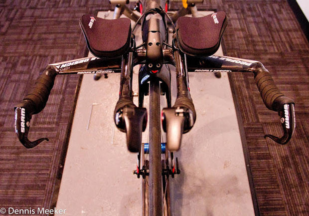 Mirinda Carfrae's aerobars are Profile Aeria and she uses ski bend extensions.