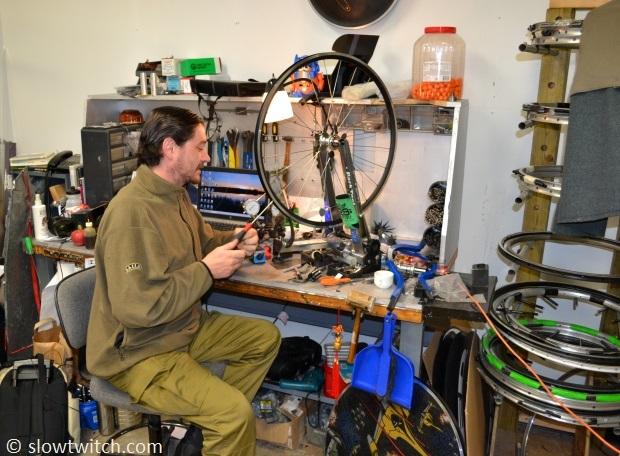 While some have accused Hed of investing zero dollars into a design originally conceived by DuPont, I learned that they have indeed made some changes. Hed completely revamped the hub internals for 2007, and they also developed their own method to more accurately true the wheels before they’re finished, seen here: