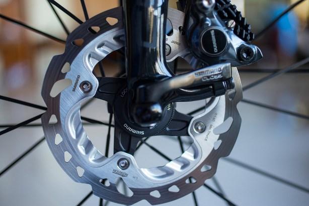 As a result, Shimano allows for the use of small 140mm rotors front and rear with no rider weight limit. Larger rotors have more surface area to contain heat, but carry the obvious downsides of increased weight and aerodynamic penalty. For comparison, SRAM’s new hydraulic disc brakes require a minimum of 160mm rotors for road use.
