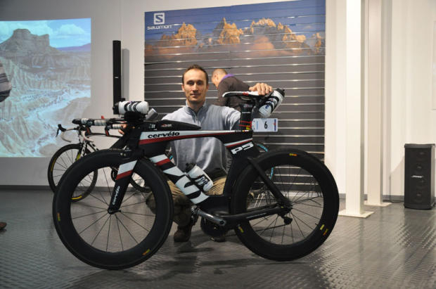 Posing with the Cervelo P5 of Frederik Van Lierde.