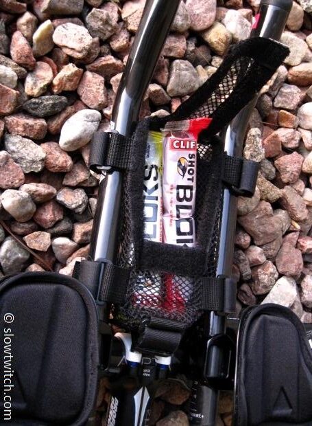 In that article, we detailed some of the key food-carrying options in the triathlon world today, along with the pros and cons of each. If you really like gel products, one easy option is to use EFS Liquid Shot, as it is available in pre-packaged flasks and large bottles. You could conceivably pour all nine (or more) of your gels into a single bike bottle that sits in a standard bottle cage – with zero gels taped to your top tube. If you like a certain brand of gel that is only available in small packets, you can look in to the various food carriers from brands like Dark Speed Works, Profile-Design, TNI, Xlab, and others. This may also influence your decision the next time you go shopping for a triathlon bike. Some have the ability to hold two bottles on the frame, while others only have one (or even zero in the case of some Giant frames). The Specialized Shiv Tri is unique in that it has one bottle cage on the frame, along with a unique internal bladder system. There are a lot of different options out there, so be sure to consider hydration/food options in addition to the frame geometry and other technical features of the bike.
