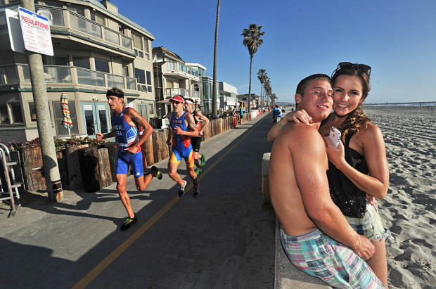 ITU runners, flying along the San Diego ocean walk at a 31 minute 10k pace, are of no concern to two lovers.
