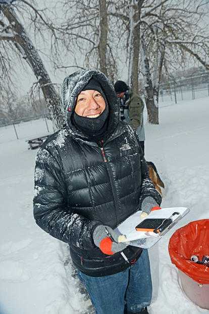 A fixture in North Boulder since 2007, there were a few hardy Boulder Beer Mile competitors who braved an 11-inch snowfall and 15-degree Fahrenheit temperatures Saturday afternoon. The basic rules: Competitors must drink one 12-ounce can of approximately 4% to 5% alcohol content before each 400-meter lap. To prove they consumed the entire can, competitors must hold the empty can over their head before taking off on each lap. If any competitor throws up or “chunders” while consuming the beer, they must complete an extra penalty lap for an official finish.