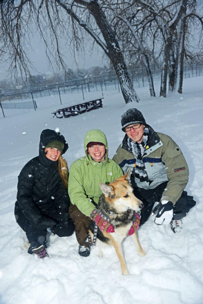 (L to R) Darcie Jones, Rachel Marie Everidge and Geoff Hower and a dog witnessed this foolhardy spectacle to the very end.