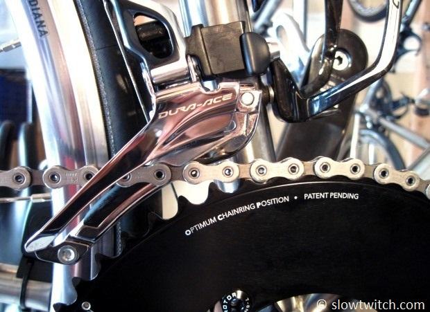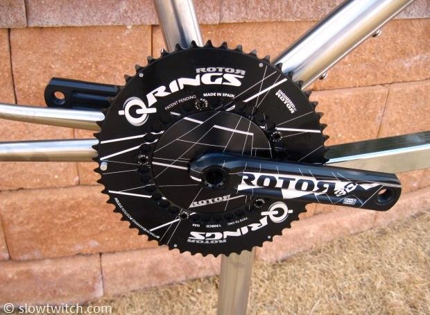 Early last year, I met with the US distributor for Rotor, Rotor Bike USA. Located in Colorado Springs, they were just down the street from me. Kervin Quinones (say ‘keen-yo-ness’) runs the show, and I came to find him as a very friendly and very busy guy. I originally got in touch not because of the Q-Rings’ shape, but rather the size; Rotor is one of the few companies left to offer a chainring larger than 55 teeth. I was building up a 650c project bike, and wanted something that would be close to matching my 53-tooth gearing on 700c wheels. A pair of 56/42 Q-Rings ended up on the bike.