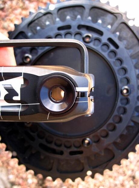 Put another way, its static position (e.g. the position in which it rests) is the clamped position. Shimano’s static position is the open position. If you put your Rotor crank in to storage while it is off the bike, you should thread the bolt back down so the crank isn’t left in this ‘stressed’ manner.