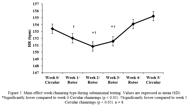Weeks one, two, and three show significant drops in heart rate compared to the round rings in week zero and five. What about week four? That trial used Rotor rings and did not show an improvement. Can Rotor claim lower heart rate based only on the weeks that showed improvement? Did they adequately control for things like training effect and participants’ recovery? Was the single practice run enough to negate any learning effect throughout the study?