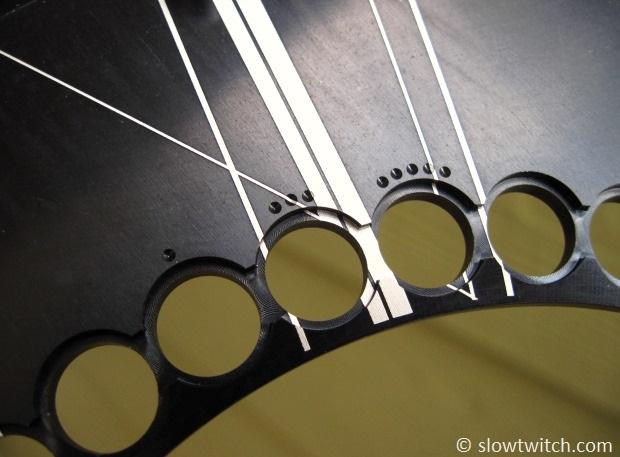 Positions one, three, and five are on one side of the ring, with two and four on the other side. The chainrings come with instructions that show you how to set these up. It is worth noting that all of their cranks ship without chainrings installed (at least in the US), because most users will want to customize their OCP position.