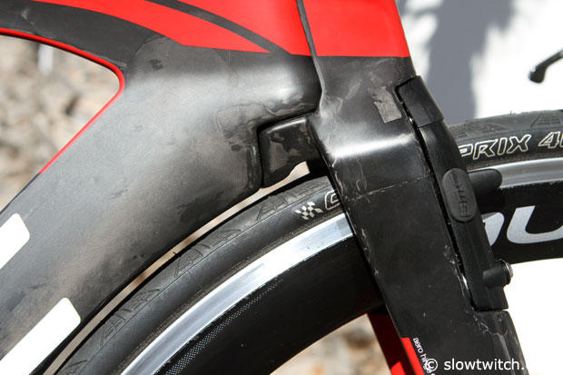 The nicely integrated brakes of the BMC TM01 are very aero.