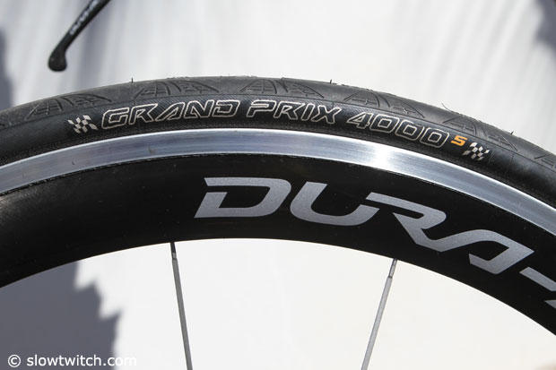 Continental Grand Prix 4000S tires on Shimano Dura-Ace C50 clincher wheels for the training on this windy island.