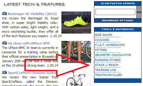 For those that aren’t familiar with our Stack and Reach database, it can be found on the upper right-hand corner of the Slowtwitch main page: