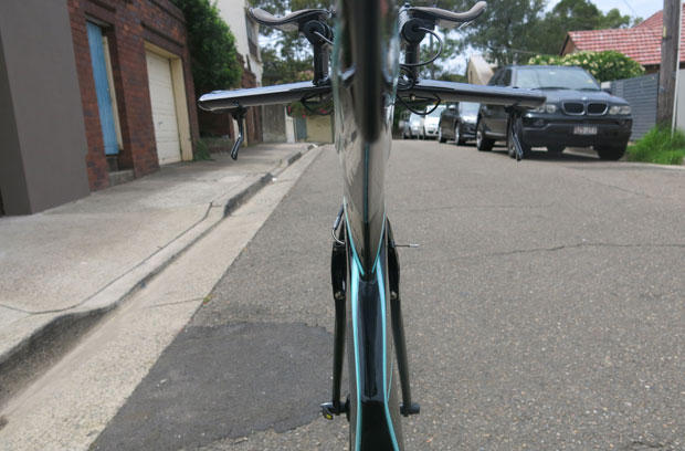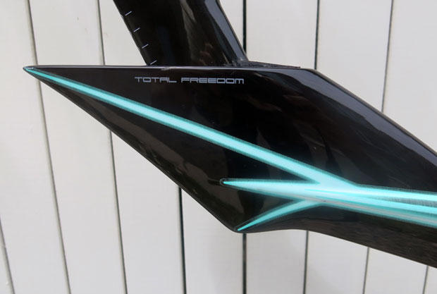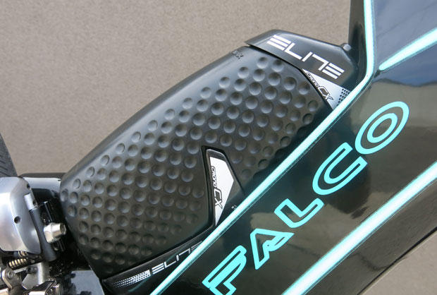 The front end of the Falvo V is very beefy and you can usually see the integrated TRP brakes well here.