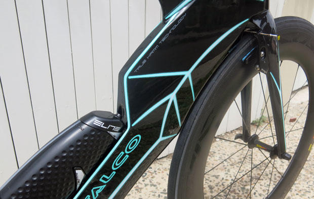 We featured a gallery of the Falco V when it was introduced at the 2013 Interbike show and some folks wondered if it was vaporware. It clearly isn't vaporware and Chris Kemp can attest to that. He raced on the Falco V to defend his title at 70.3 Auckland and had a very fine bike split on it. He just did not have the right running legs that day.