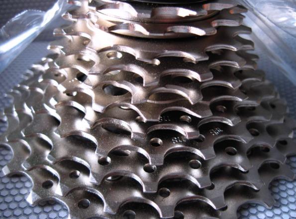 With nine speeds, your limiter tends to be how wide your cassette range can be. In other words, you don’t find many 9-speed cassettes that have a very small cog in the first position and a huge cog in the ninth position (barring, of course, mountain bike 9-speed systems). Back when Shimano was largely running the world of cassettes, your typical 9-speed road cassette ratios were: 12-23, 12-25, 12-27, 11-21, and 11-23. SRAM offered a 12-26. Campagnolo offered a 13-26. My list isn’t exhaustive; this just covers what most of us rode.