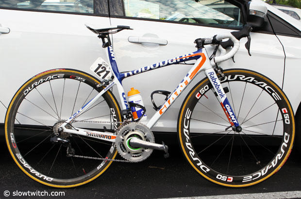 The name Diamondback reminds us mostly of BMX and mountain bikes, but they also make some very nice road bikes. At the Boston Scientific Winston-Salem Cycling Classic we looked closer at the Diamondback Podium Optum race bike of Alex Candelario of the Optum Pro Cycling team that is presented by Kelly Benefit Strategies. Candelario who resides in Bend, Oregon is 6 feet tall and weighs 170 pounds.