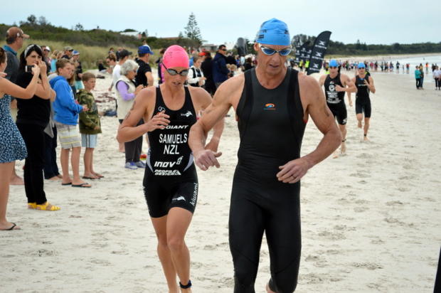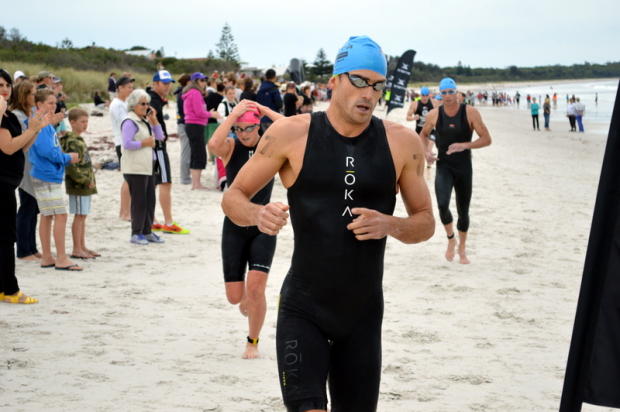 After a superb swim Courtney Atkinson was first on the bike.