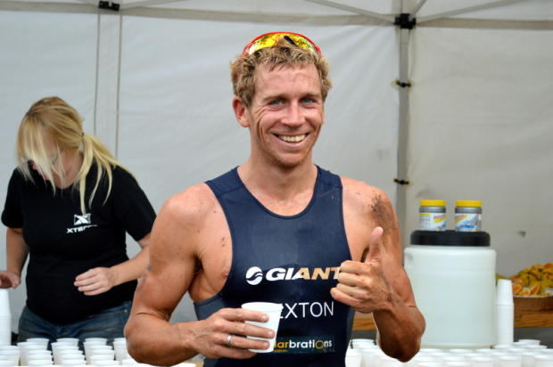 ITU Pro Branden Sexton seemed to enjoy this muddy experience very much.