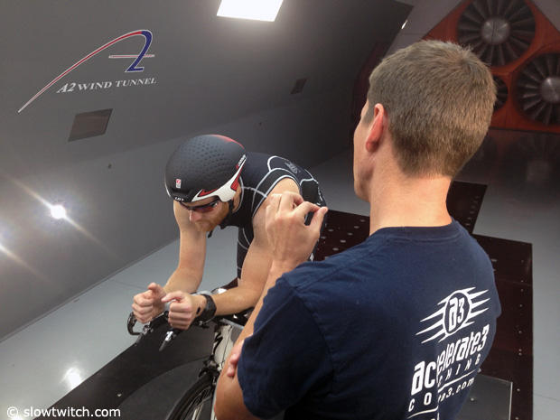 The AeroCamp 2.0 is currently taking place in Mooresville, NC at the A2 Wind Tunnel and we visited this event during the first day. Each day 4 campers were scheduled for 2 hours blocks and it really depended on the athlete what they wanted to test. Heath Dotson and Brian Stover, the men behind AeroCamp, were there to lend a hand and give input, plus the crew of the A2 Wind Tunnel was helpful to the campers.