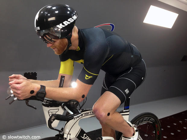 It will be either the LG P-09 or the Kask Bambino for him, with a very slight edge to the Kask in his case. With a new helmet and hand position Jamie Gambrell gained about 10 watts at 0 and yaw and he was not done yet.