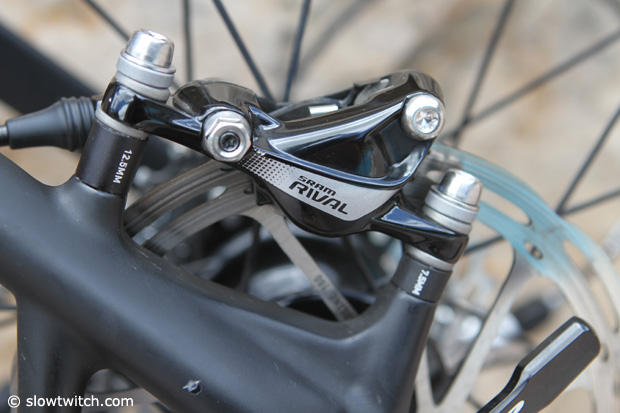 An ice grey black anodized finish graces most of the the parts, but are very distinctive on the Rival DoubleTap shifters. The bike we chose to shoot had a hydraulic disc brake setup, and word has it that this will be so for the majority of OE bikes.