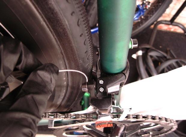 The newest Shimano front derailleurs have received a lot of well-deserved praise. They work really well (and so did the previous generation of front derailleurs). With new trim positions and pull rates, the setup of the new FDs has gotten a fair bit more difficult, however. They require MUCH more cable tension than the old FDs, which makes in-line barrel adjusters a necessity. Additionally, there is a special converter switch integrated in to the cable anchor bolt, which needs to change based on how the cable exits your frame.