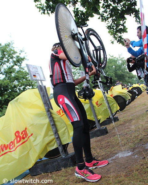 Before the race Natascha Badmann made sure all water is out of her bike and it did the magic. Her bike split of 4:44:25 was fastest among the females.