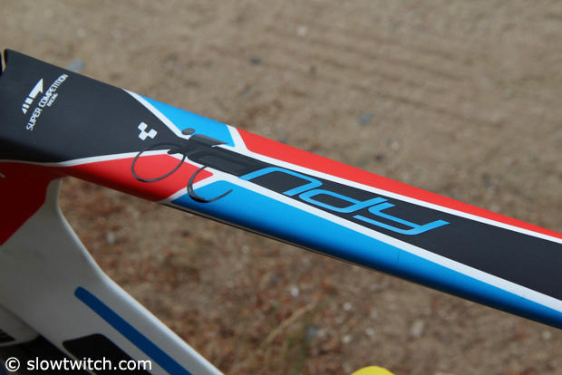 The custom fi'zi:k Tritone saddle matches the bike nicely.