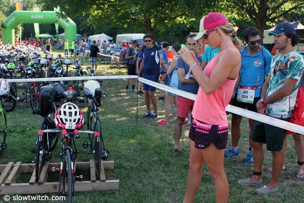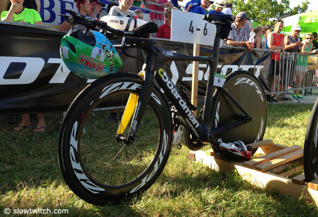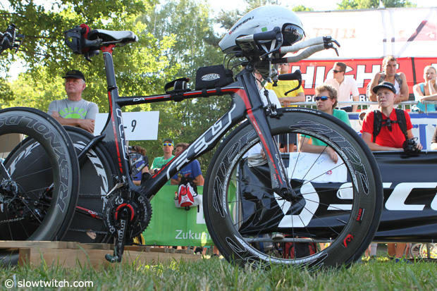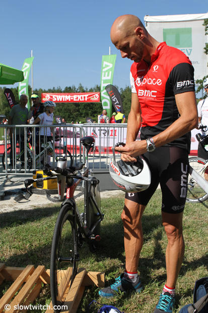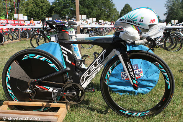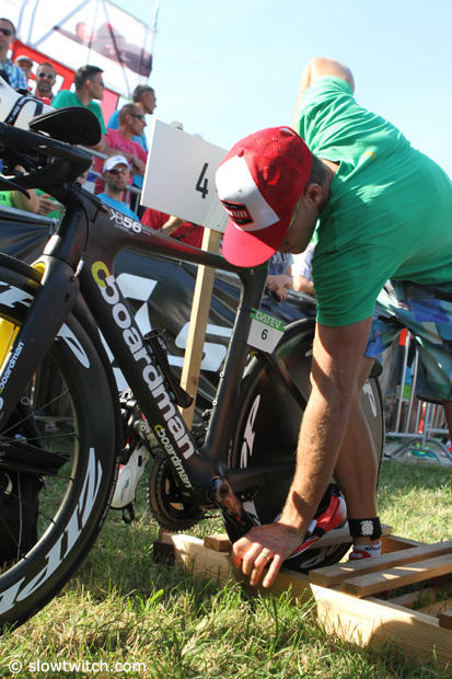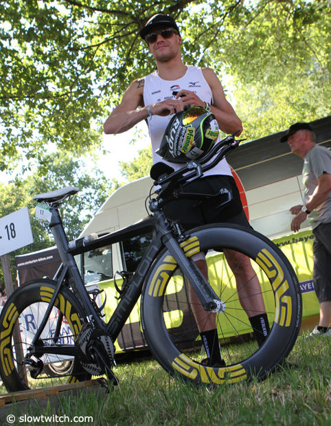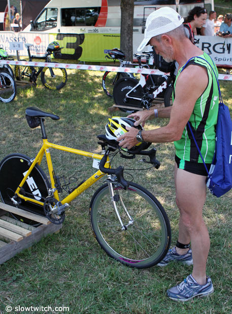 Timo Bracht was very methodical as he set up his race bike in transition.