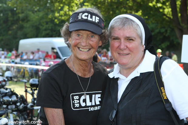 Sister Madonna brought her German home hosting sister to the bike check-in.
