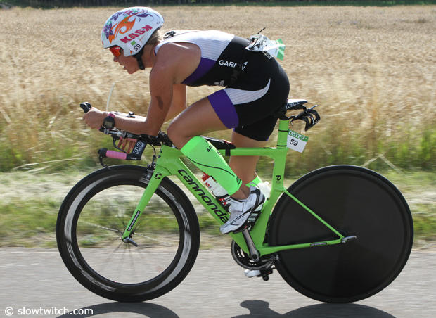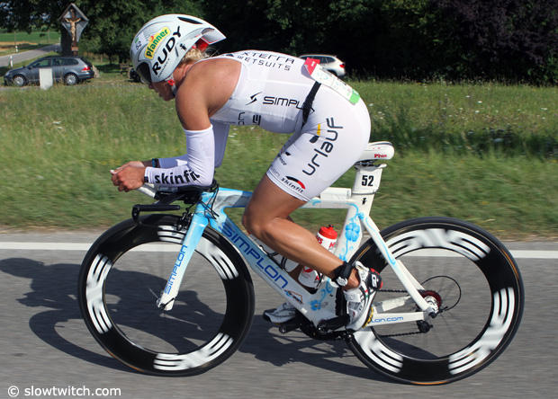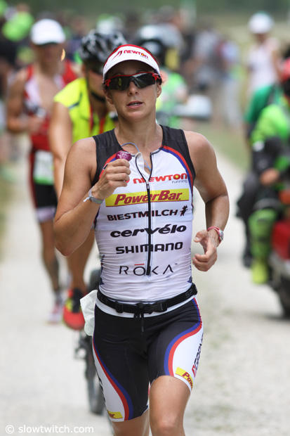 After a fine swim, defending champion Caroline Steffen was in the lead on the bike.