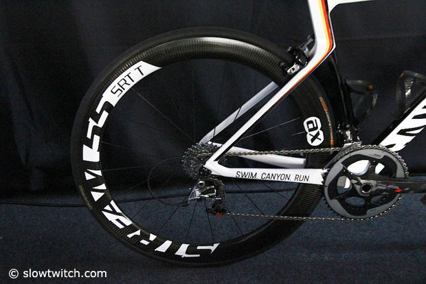 We took a closer look at the custom painted Canyon Aerorad CF SLX of German ITU Pro Anne Haug. We also got to see a trick new integrated stem from Canyon.