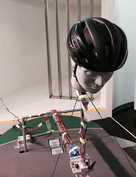 Rob: Our methodology includes two pitch angles. 30 degrees and 60 degrees; measured from the vertical plane. The 30 degree angle most closely represents a cyclist in their normal, steady-state position – fairly relaxed posture, hands either on the hoods or in the drops and looking forward. This 30 degree head angle also represents a TT rider in their tucked position looking up the road. The 60 degree position is when a rider dips or drops the head and looks down to rest the neck muscles. As with all testing, we are trying to simplify the static test parameters to most closely match real world conditions. Riding is dynamic and each consumer may have slightly different angles that their head is positioned at when riding. These angles were chosen based on multiple studies of athletes’ average riding positions.