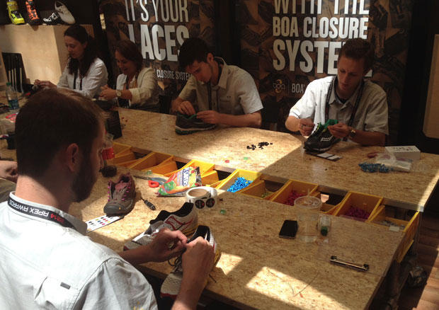 Last year the Boa Closure System crew feverishly worked up a sweat replacing shoe laces with their retro-fit wired system.