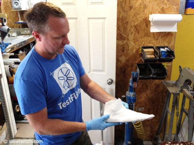 Brad takes Balazs' massive size 14 feet through the molding and casting stage.