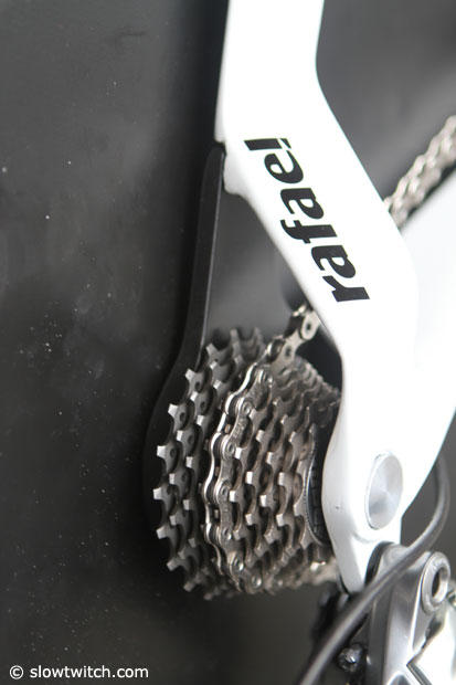 The driveside dropout is supported in a triangular way with a plate behind the cassette that can be removed.