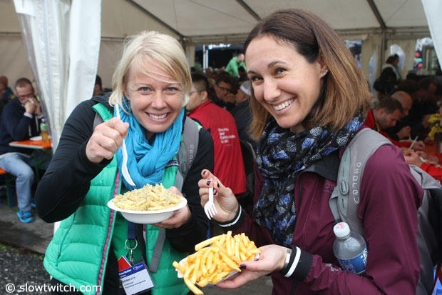Val Vanderpol and Megan Tompkins about to enjoy lunch during the Eurobike Outdoor Demo Day.