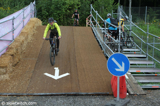 Closer to the demo area this ramp and stairs allowed cyclists to enter and leave the trails.