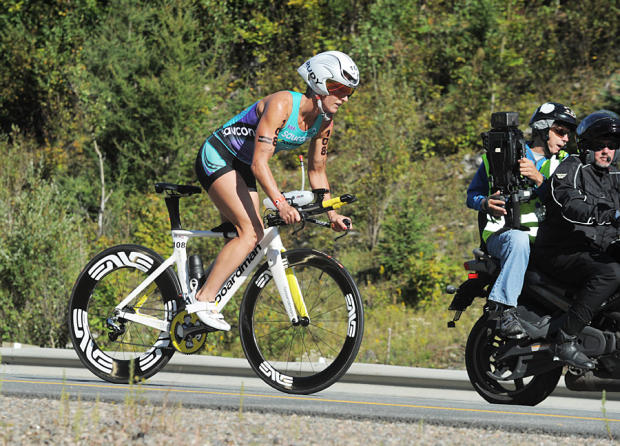 Jodie Swallow pushed Daniela Ryf on the bike leg, helping her to an unassailable lead at T2. Swallow took the silver.