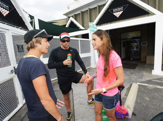 Lindley meets with Valentina Carvallo and her boyfriend Jose Zirpel after the swim workout.