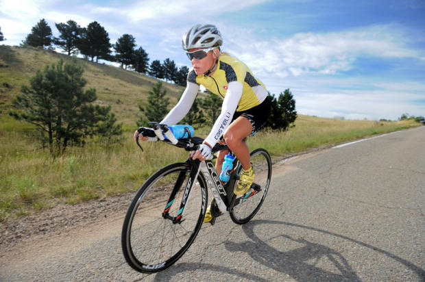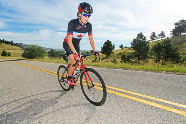 Paula Findlay climbs during the bike workout. Findlay was able to return to world class form on the bike while making cautious progress from her injuries on the run.