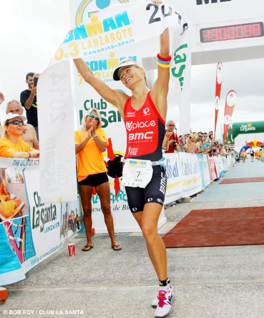 Lest anyone think Schärer is not a serious triathlete, she has raced a lot in the past two years with very promising results. In 2013, she raced 15 times including a 4th at Alpe d’Huez, a 2nd at Ironman Switzerland, 2nd at Embrunman, 4th at XL Gerardmer, 5th at Cozumel 70.3, and 4th at Ironman Cozumel. So far this year, despite injuries, she has raced 10 times and her results include 6th at Rapperswil 70.3, 4th at Luxembourg 70.3, and 6th at Ironman Switzerland. We have included a photo of Schärer in training to show she is not all about the glam.