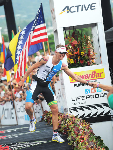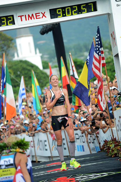 The thrill of victory exemplified by 3-time Kona champion Mirinda Carfrae, who finished in 9:00:55 with a record 2:50:26 marathon.