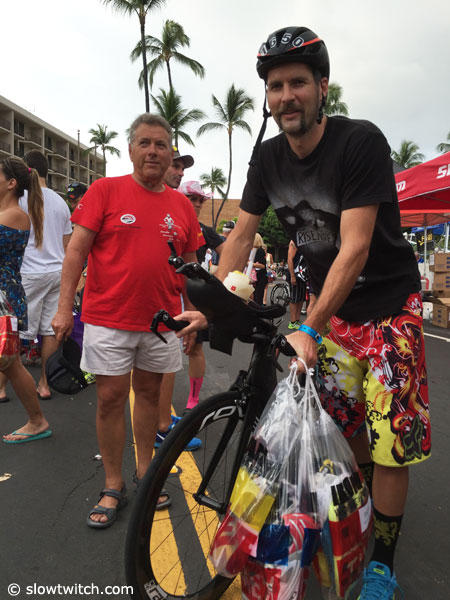 1. Bike Pick up. At 10:45 pm we drove into town to get the rig and found the atmosphere was absolutely electric. For me walking down Alii drive toward the finish cheering for competitors was better than running down as a competitor. Maybe it was because I knew what this meant to them or maybe it was just the cooler night air, the lights and the glow sticks. The music was great, the commentary was great and the herculean efforts by those competitors coming in over 16 hours was inspiring. This was by far the best experience of the entire day.