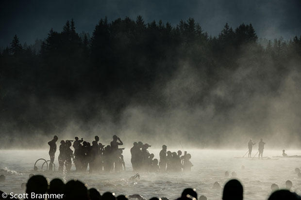Scott Brammer added – July 27th, 2014, Triathletes check out the water from a dock before the start of the 2014 Subaru Ironman Canada…